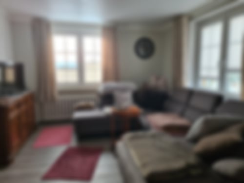 Nebenan ist das moderne Wohnzimmer, welches durch eine große Couch mehrere Sitzmöglichkeiten zum gemütlichen Beisammensein bietet, sowie ein Sat-TV.